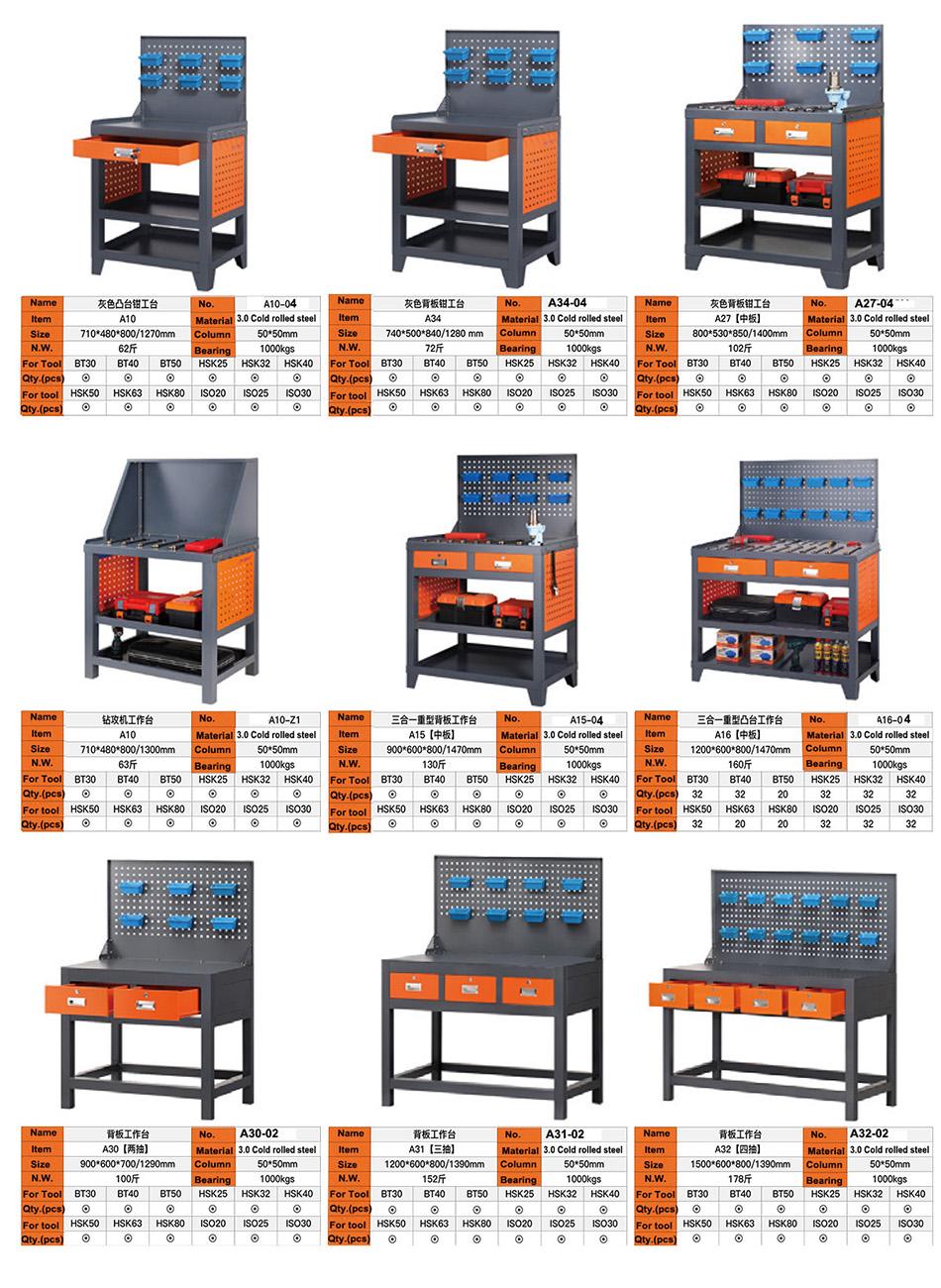 Those products are machining center dedicated worktable which are welded from 3.0mm thickness cold-rolled steel, they can be used as not only cnc tool holders storage cabinet but also worktable. please choose the right one which is good fit for your needs.